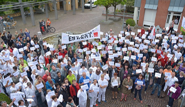 162.000 Kolleginnen und Kollegen fehlen laut ver.di-Personalcheck bundesweit in deutschen Krankenhäusern. Zu einem bundesweiten Aktionstag hatte die Gewerkschaft jedem Krankenhaus von Flensburg bis Oberammergau den Anteil der Nummern von 1 bis 162.000 zugewiesen, die dem durchschnittlichen Personalbedarf der Klinik gemessen an Vollkraftstellen aller Krankenhäuser entspricht. Bei den 162.000 fehlenden Stellen, deren Besetzung und Finanzierung ver.di fordert, handelt es sich nicht nur um 70.000 fehlende Pflegestellen, sondern auch um über 90.000 weitere notwendige Stellen am Krankenhaus, die im Krankenhausstrukturgesetz des Bundesgesundheits-ministeriums überhaupt nicht berücksichtigt sind.